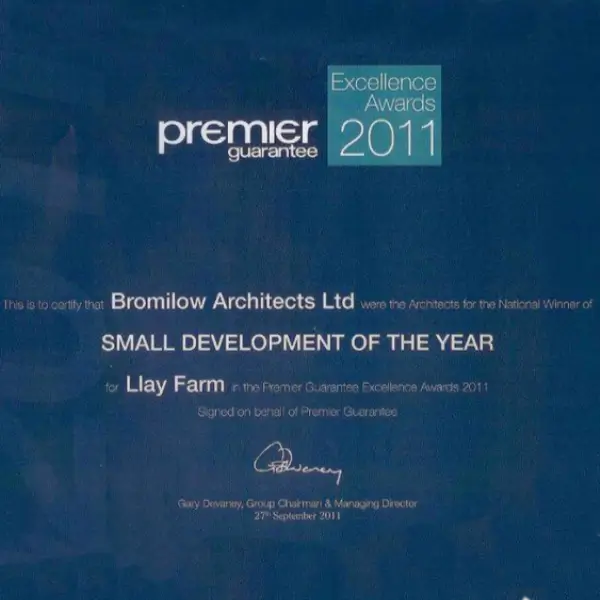 Premier Guarantee Excellence Award for Bromilow Architects Ltd